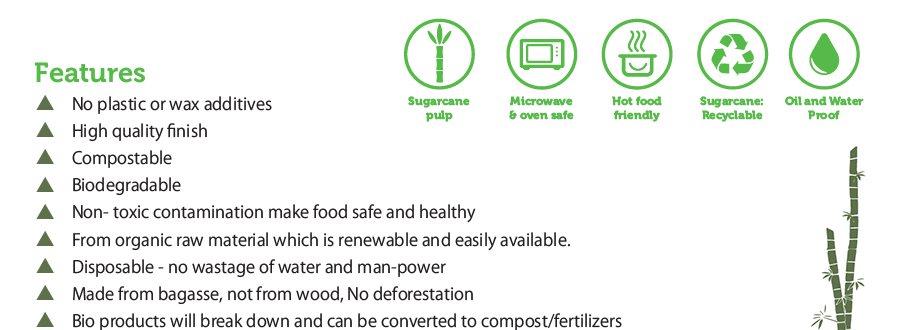 - Eco-Friendly Construction, made of high quality sugarcane bagasse pulp